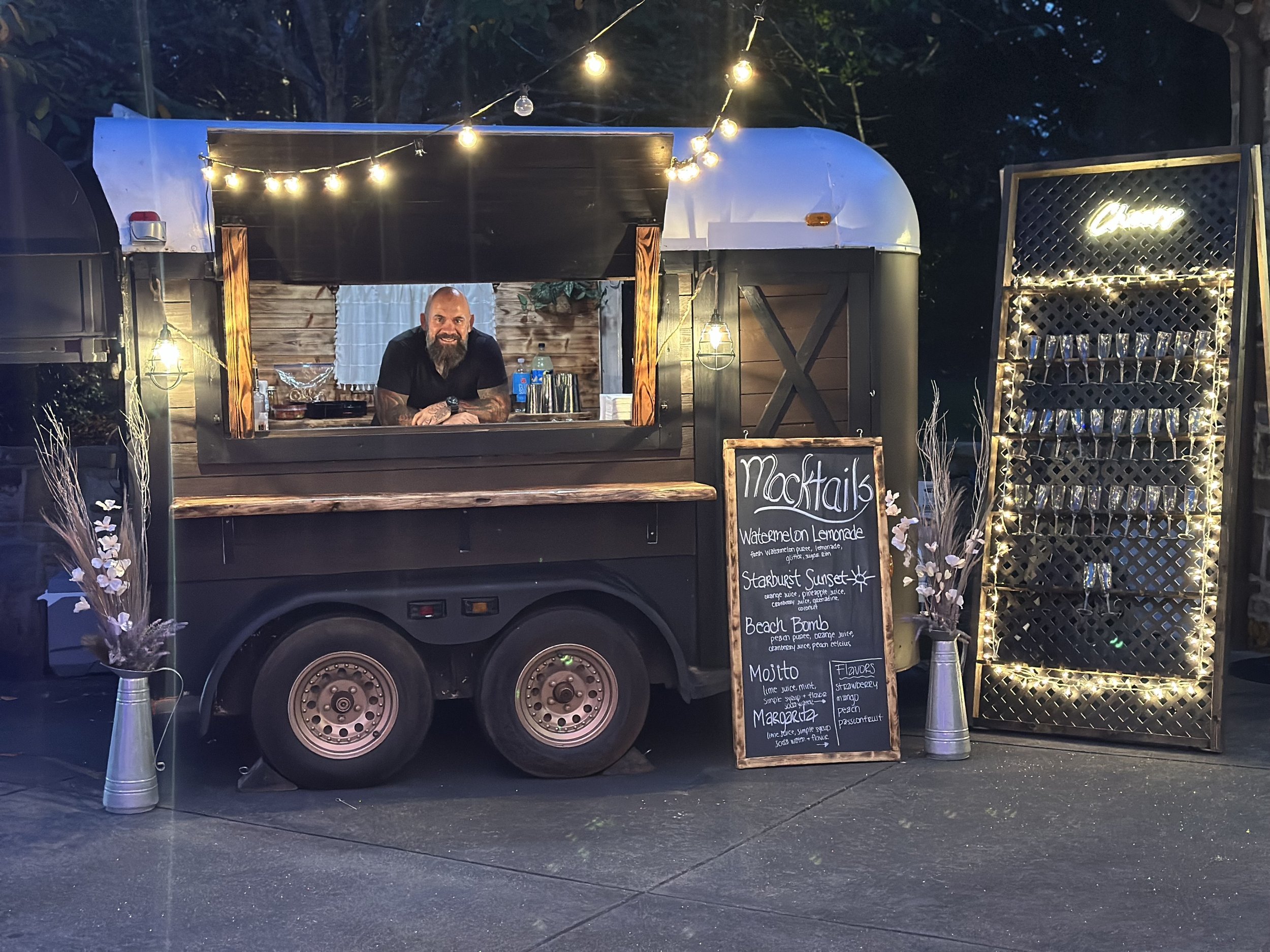 Premium mobile bar service featuring our 1991 vintage horse trailer and pop-up bar setups for unforgettable events